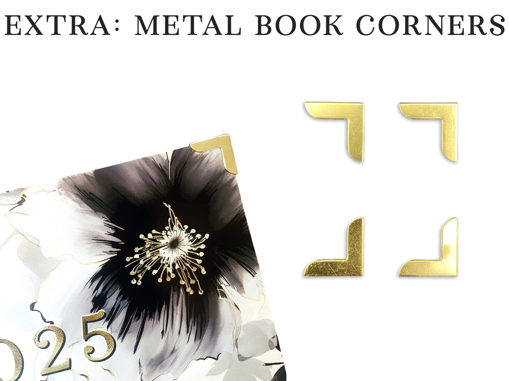 Gold metal book corner protectors are available as a separate add-on. Please be mindful of the gold color in contrast to your chosen cover design. Especially w.r.t the anatomy designs. Reach out should you be unsure.