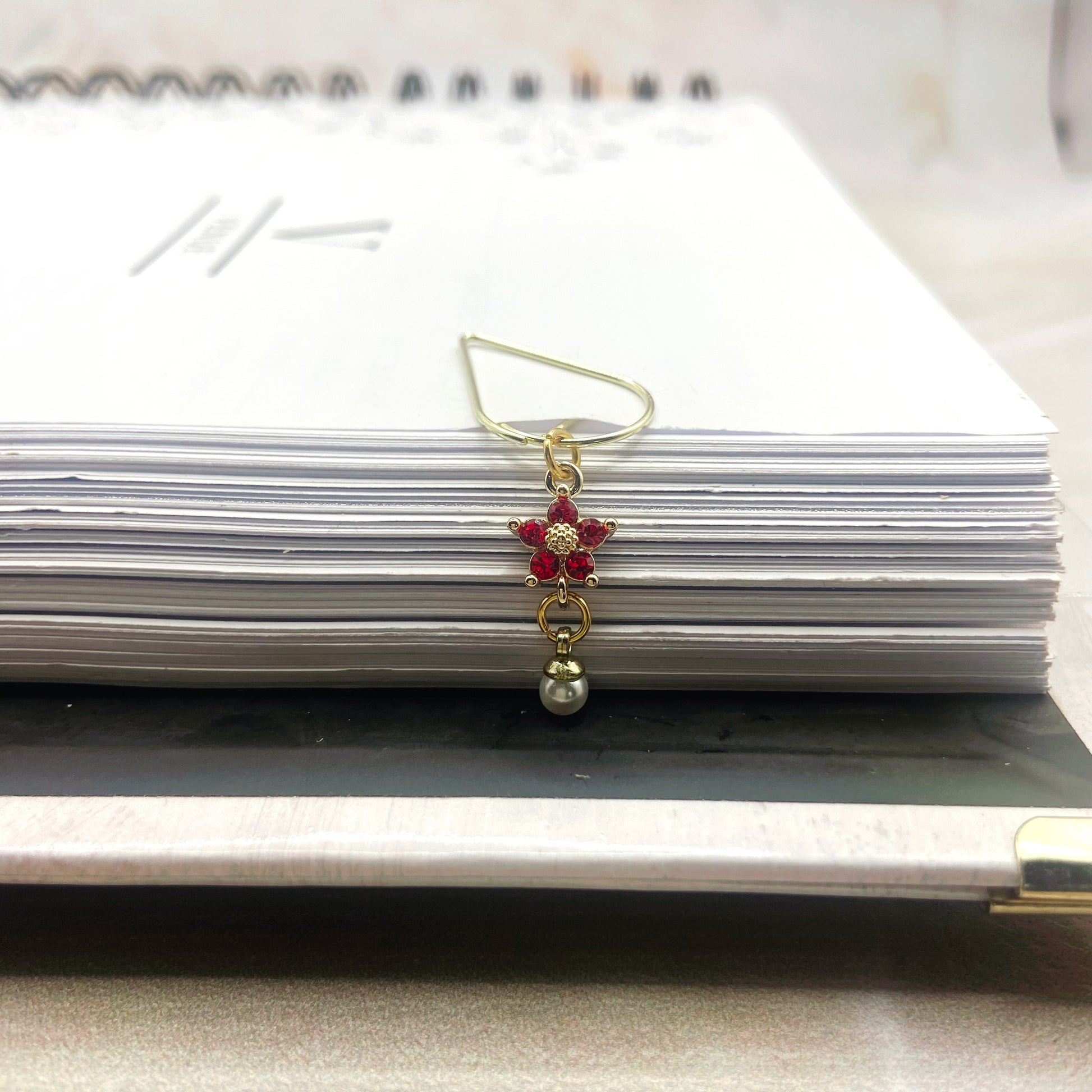 Dainty Flower Red Drop Planner Bookmark Charms