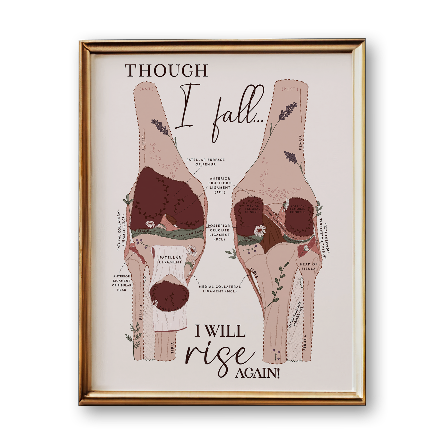 Transform your medical practice with this stunning Knee Anatomy Art Print! Not only will it add a touch of motivation to your space, but it also serves as a beautiful educational tool. With a unique design and a powerful motivational quote, this art print is a perfect addition to any medical setting. Order yours today and be inspired!