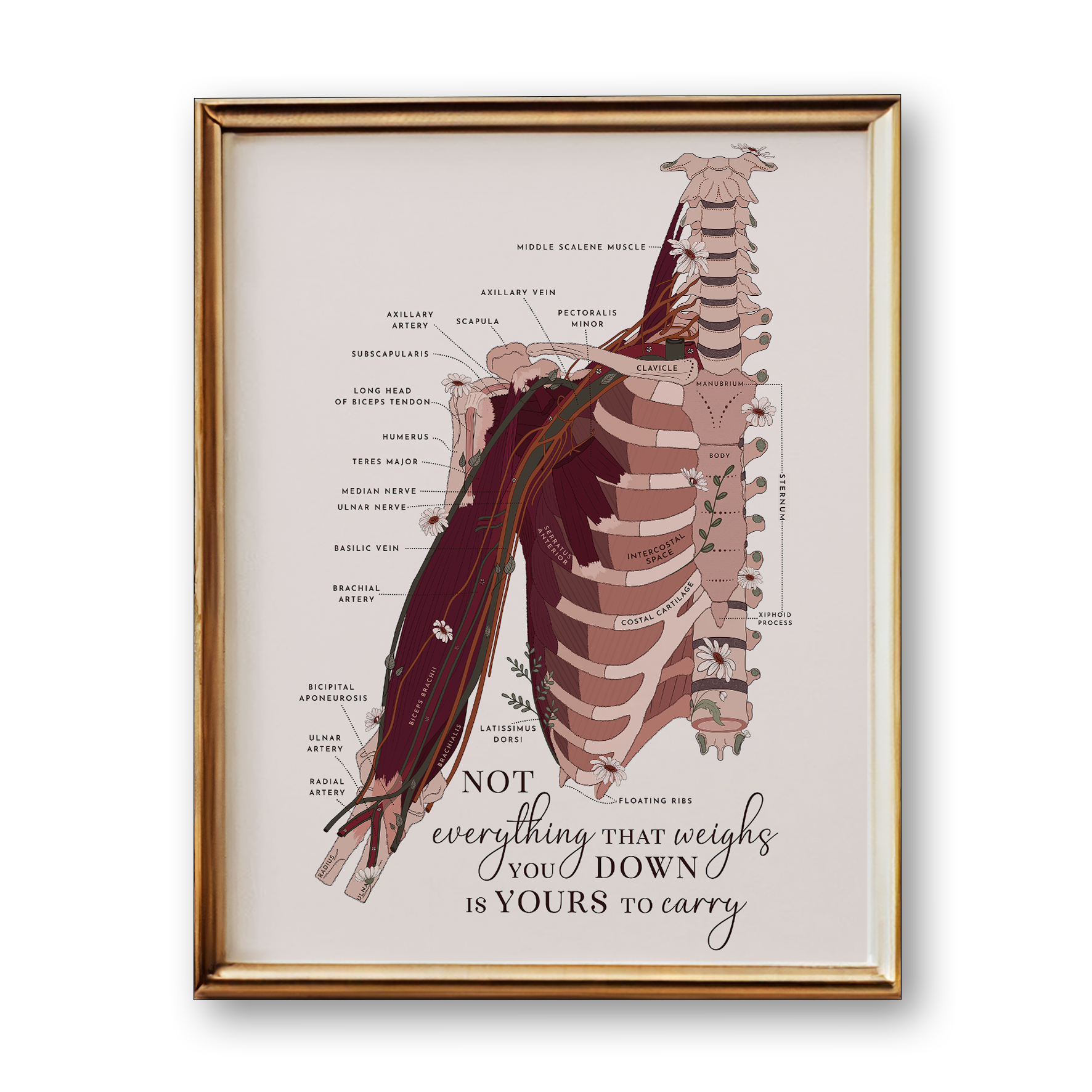 Transform your medical practice with this stunning Upper Limb Anatomy Art Print! Not only will it add a touch of motivation to your space, but it also serves as a beautiful educational tool. With a unique design and a powerful motivational quote, this art print is a perfect addition to any medical setting. Order yours today and be inspired!